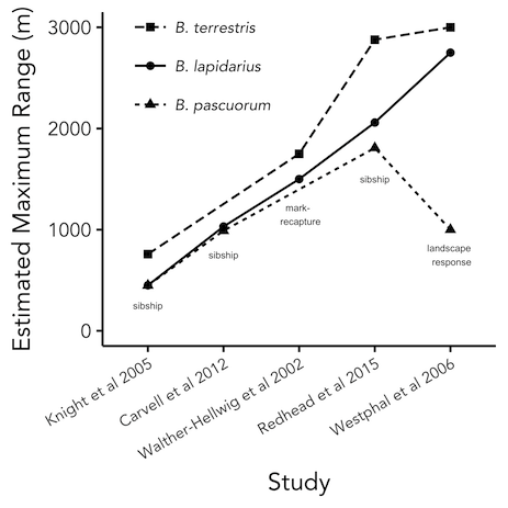 Mola, J.M. and N. M. Williams. 2019. A review of methods for the study of bumble bee movement. Apidologie https://doi.org/10.1007/s13592-019-00662-3 [PDF]